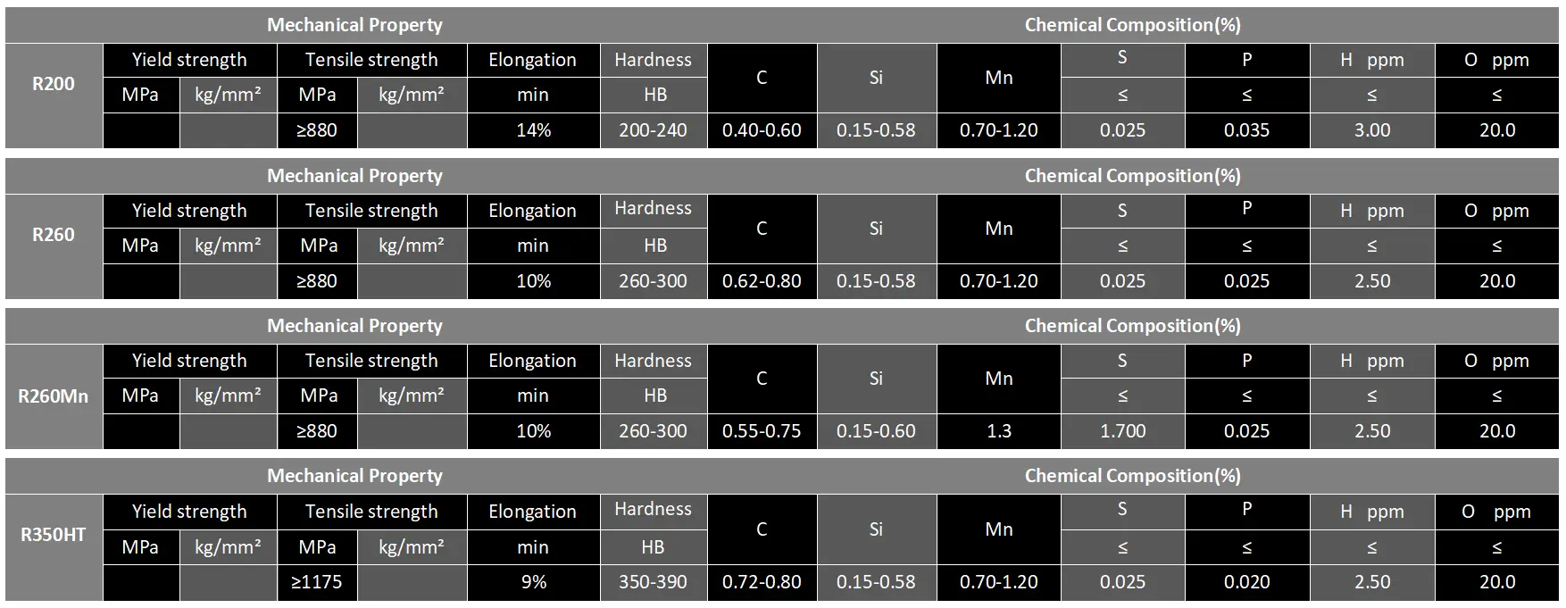 55E1 Rail Steel Grade & Material